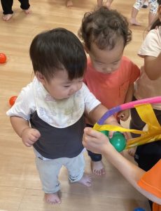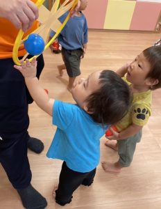 みんな一生懸命手を伸ばしてボールを引っ付けていました🥎✨