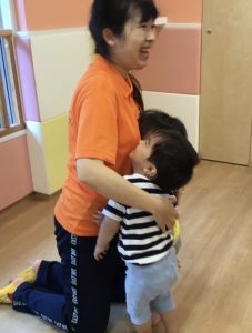 保育者と抱き合ってゴールを喜び合う姿も、とっても可愛いですね![]()