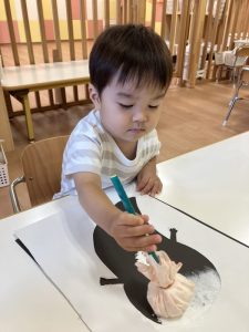 ももぐみさんは、入園してきたばかりで慣れ保育中のため、これから少しずつ制作に取り組んでいけたらと思います🙂