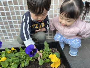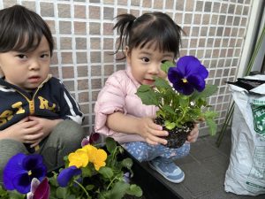 さて今回は、高槻市からたくさんのパンジーを頂きましたので、りんご組🍎のお友だちが植えた姿や子どもたち水やりの様子をお届けしたいと思います![]()