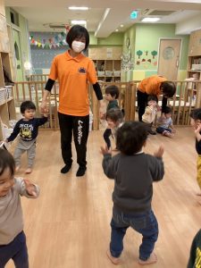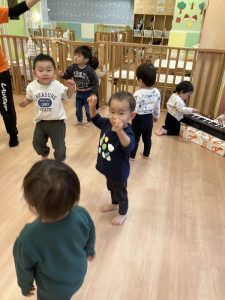 を聞いて音に合わせて体を動かす事を楽しみます😊