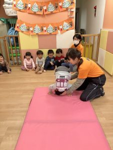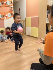 りんご組のお友達だちは一回目下に落ちてしまっても2回目には上手にキャッチしていましたよ