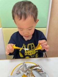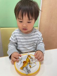 そして金と銀の折り紙を破りまーす![]()