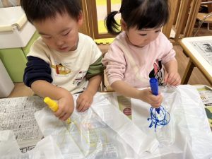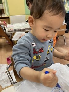 二人とも上手にペンを持ってお絵描きを楽しんでいましたよ![]()