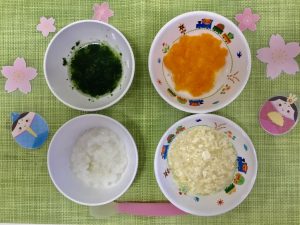 今日は、ひな祭り会でした。給食も「ちらし寿司♡」華やかな給食を子どもたちはニコニコ笑顔で食べてくれていました☺