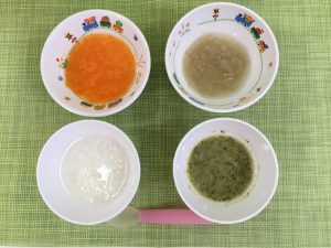 粥 野菜スープ 人参ペースト ブロッコリーのだし煮