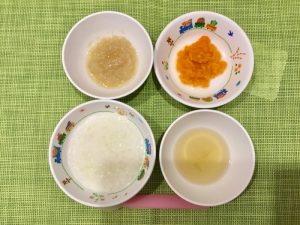 粥 すまし汁 にんじんのペースト 玉ねぎのトロトロ煮