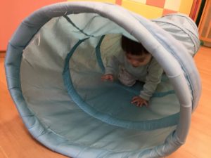 トンネル、ウェーブ平均台、お山マットを使ってサーキット遊びをしました