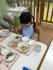 えみこ先生に湯がいてもらい、少しずつですが、みんなで美味しく頂きました🥣
