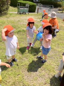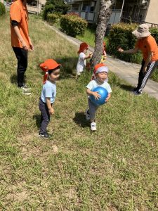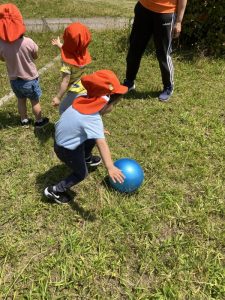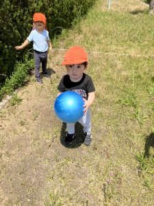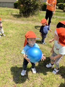 一度ボールを手にするとしばらく持っていたい子どもたちでしたがお友だちにポーンと投げてたのしんでいましたよ。