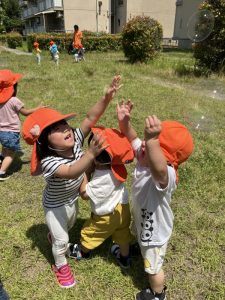 きゃーきゃー言いながらシャボン玉を追いかけ楽しんでいました👐