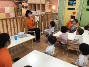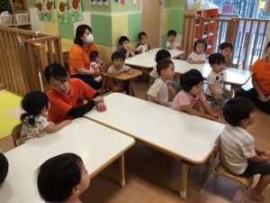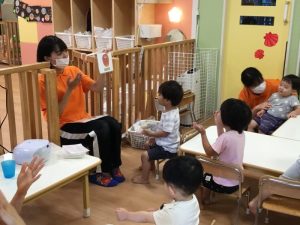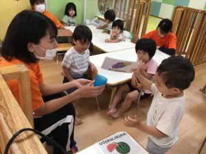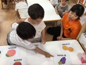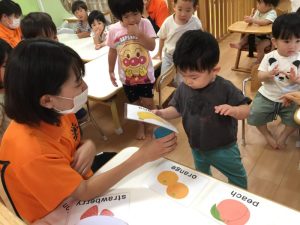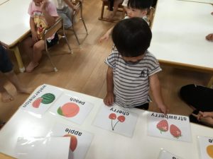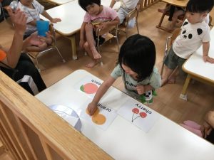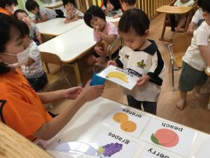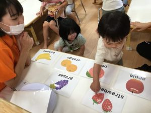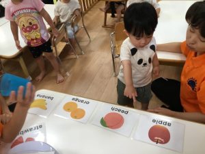 保育者と一緒に「strawberry!」「peach!」「apple!」などと上手に発音する事ができていました🍓🍑🍎
