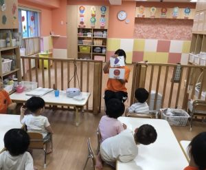 「英語の時間がはじまるよ〜」の声かけ聞こえると「やった〜!」と嬉しそうな子どもたちです☺️