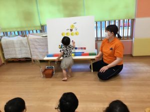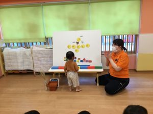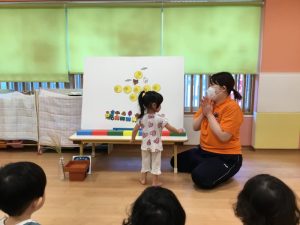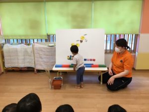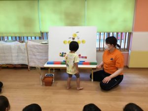 当てっこが当たるとお月見汽車に貼ってもらいました😄