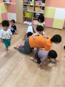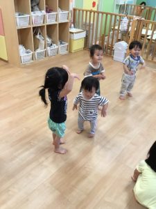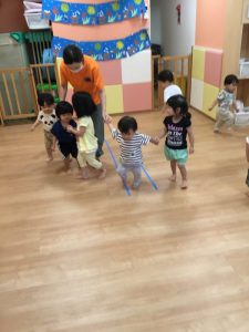 お友だちや兄弟で手を繋ぎお部屋の中をお散歩します![]()