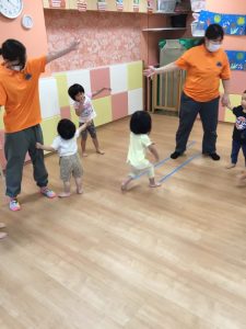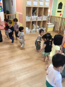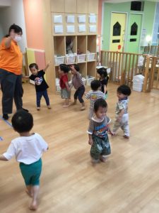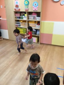 続いては、広いお部屋に移動してピアノな音に合わせて体を動かします![]()
