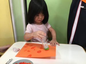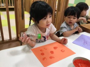 次はペットボトルの蓋のスタンプをポンポン🎵