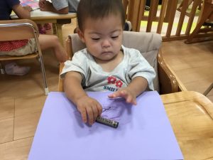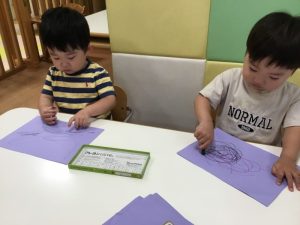 次は、紫色の画用紙にクレヨンで絵を描きました🖍️