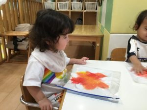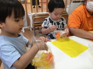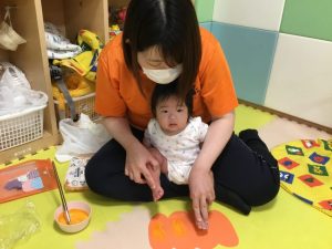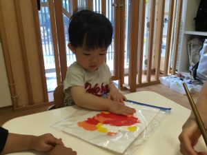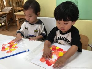 絵の具の感触に驚いてしまうお友だちもいました🫢