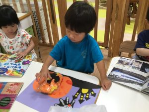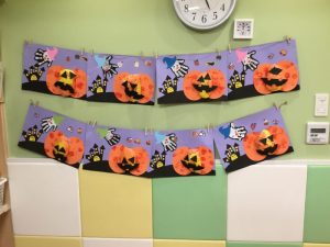 お部屋に飾ると「かぼちゃのお化けこわーい!でもかわいいー!」と楽しそうにお話ししていた子どもたちでした🥰