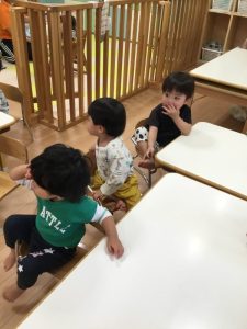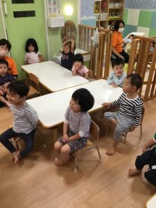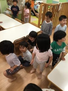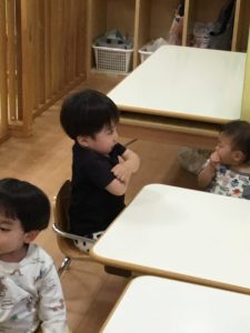 「sit down🎵stand up🎵」の歌詞では、しゃがんだり立ったりと上手に体を動かしていました![]()