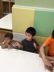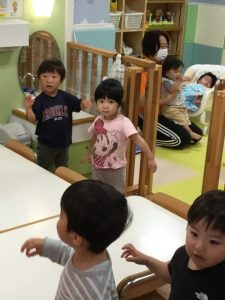 午前睡をしていたもも組さんのお友達も途中からですがご機嫌に参加していましたよ![]()