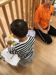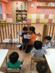 いちご組さんも真剣にピクチャーカードを見ていますよ![]()