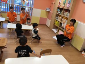 その他に、みんなが大好きな「If you’re happy」も手遊びをしながら楽しみました![]()