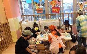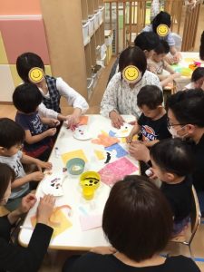 ハロウィンシールやカラフルな丸シールなどを貼って、オリジナルのハロウィンバックを親子で作って楽しみました🎃![]()