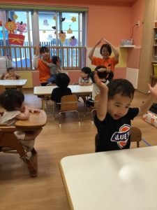 その他に、みんなが大好きな「If you’re happy」も手遊びをしながら楽しみました![]()