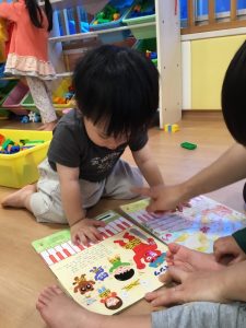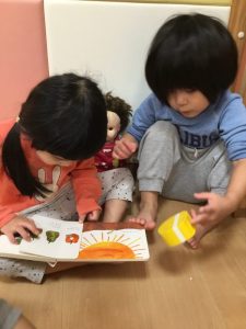 こちらのお友だちははらぺこあおむしを読んでいますよ🐛