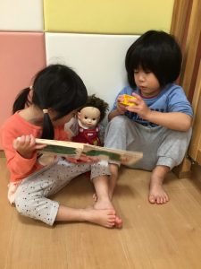 ぽぽちゃんに読み聞かせしてあげていました😍