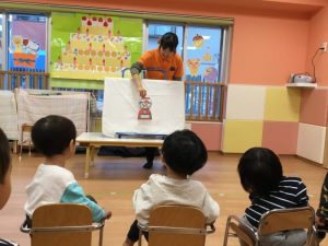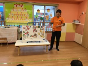 保育者からの出し物は「ガチャガチャあそび」のパネルシアターです✨