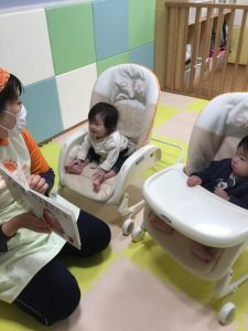 さて今回の絵本ブログは、0歳児ももぐみさんの朝の絵本の様子です![]()