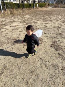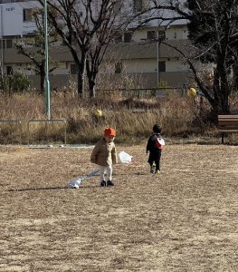 後日、完成した凧を持って公園へお散歩は行きました♪