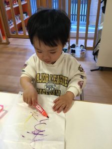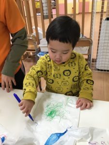 「みてみてー!○○ちゃんのお顔! 」とお顔を描いたり、