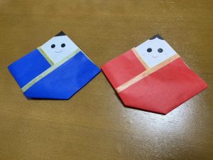 和柄の折り紙で作ったり、折り紙にシールを貼ったりするのも
