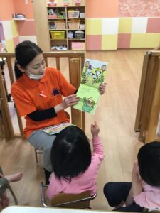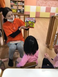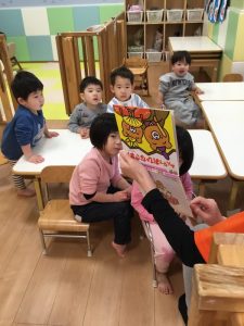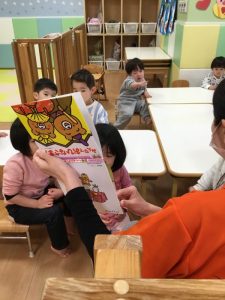この絵本はしかけえほんになっていてこどもたちは真剣に見ていますよ👀