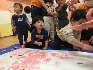 みんなの手型をたくさん付けて