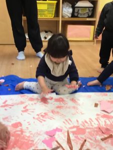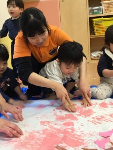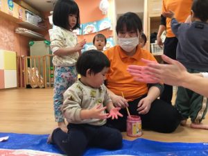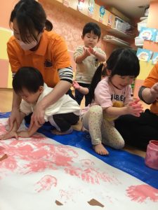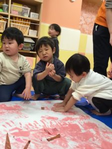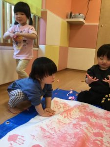 みんな、手が絵の具でいっぱい!ですが
