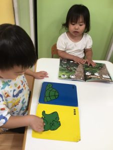 かえる🐸かめ🐢と教えてくれたり、、真剣に見ていましたよ👀