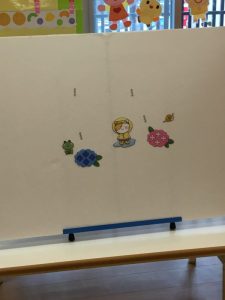 お花が登場すると、「あじさいだー!」とワクワクしている子どもたちの姿が見られました⭐️