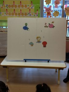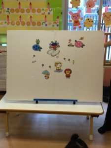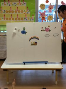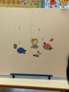 次は保育者の出し物で、パネルシアター 「雨の日のおさんぽ」を見ました☔️
