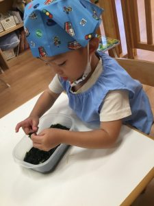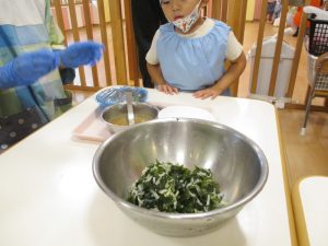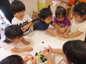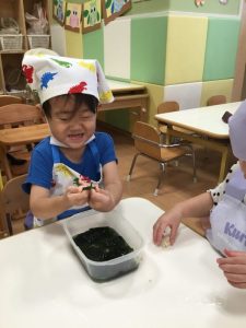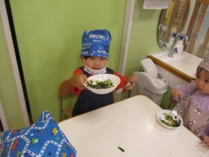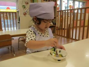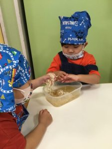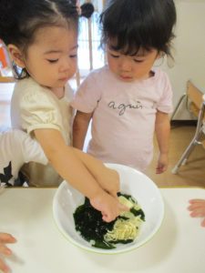 食材の感触をとても楽しんでいました![]()