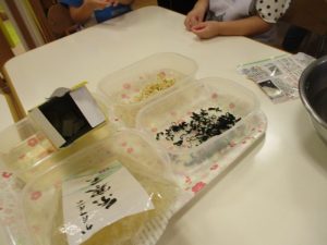 今月の食材は、高野豆腐、切り干し大根、寒天、わかめです![]()