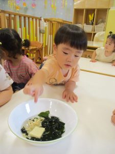 わかめの感触に夢中な子どもや、
