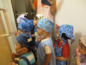 感触を楽しんだ後は、給食室まで食材をみんなで運び、