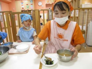 調理師のえみこ先生が取り皿に少しずつ分けてくれました![]()