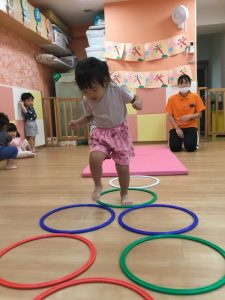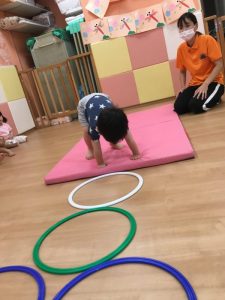 マットやフープを使ってさまざまな動きを緩急をつけながら楽しんでいます。健やかな体と心をつくる基盤に繋がっていく活動をご覧ください🙌