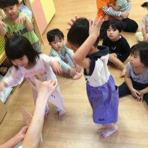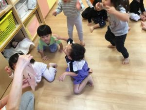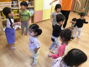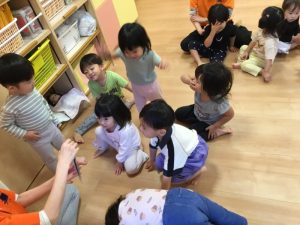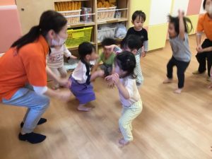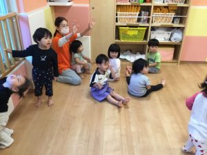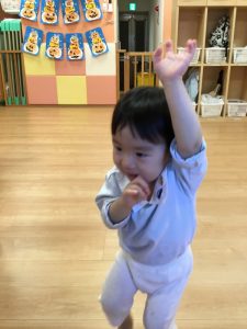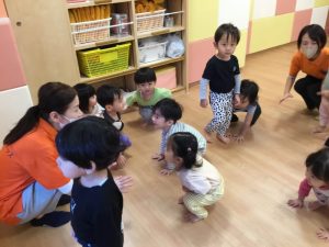 音楽に合わせて動物の動きをいれて体を動かします😊